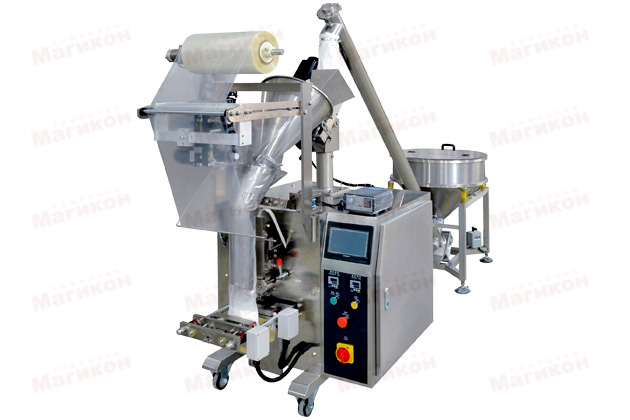 Для решения поставленной клиентом задачи, компанией «Магикон и К» был поставлен вертикальный фасовочно-упаковочный автомат MAGIKON-150AV-FHD для пылящих продуктов.
